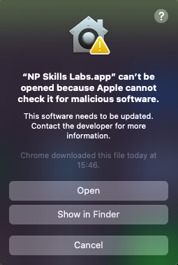 - Launch NP Skills Labs. You can find the installed application in the "Applications" folder or the location where you copied it. Double-click the application icon to launch it.